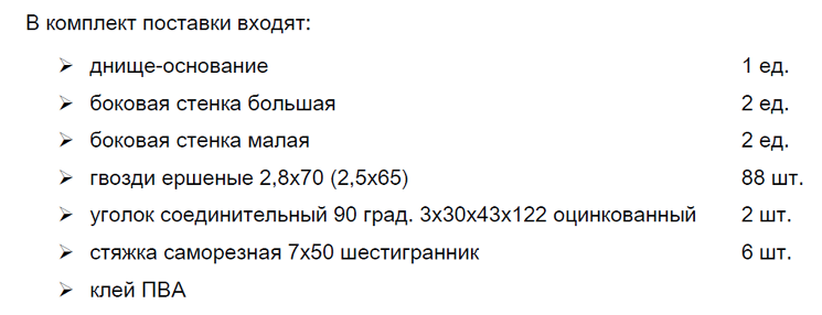 ![]() Пакет из больших боковин (12 шт. на днище производства ООО «ДОК») |
